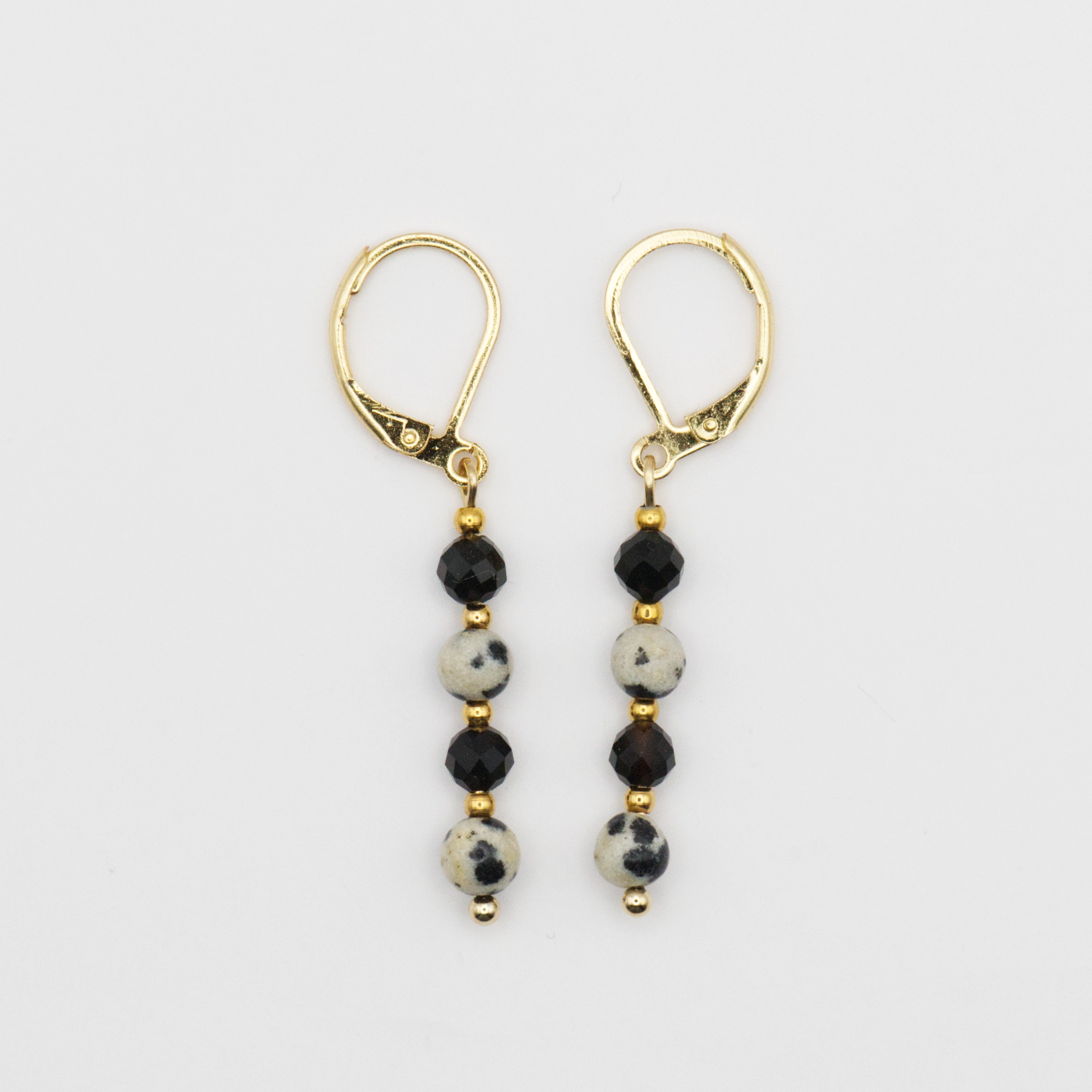 kolczyki z japisem dalmatyńskim i czarnym agatemKolczyki z jaspisem dalmatyńskim i czarnym agatem – Jaspis & Agat 2 Colors