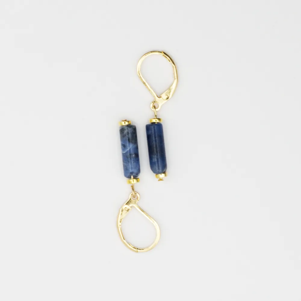 kolczyki z sodalitem w kształcie słupkaKolczyki z Sodalitem