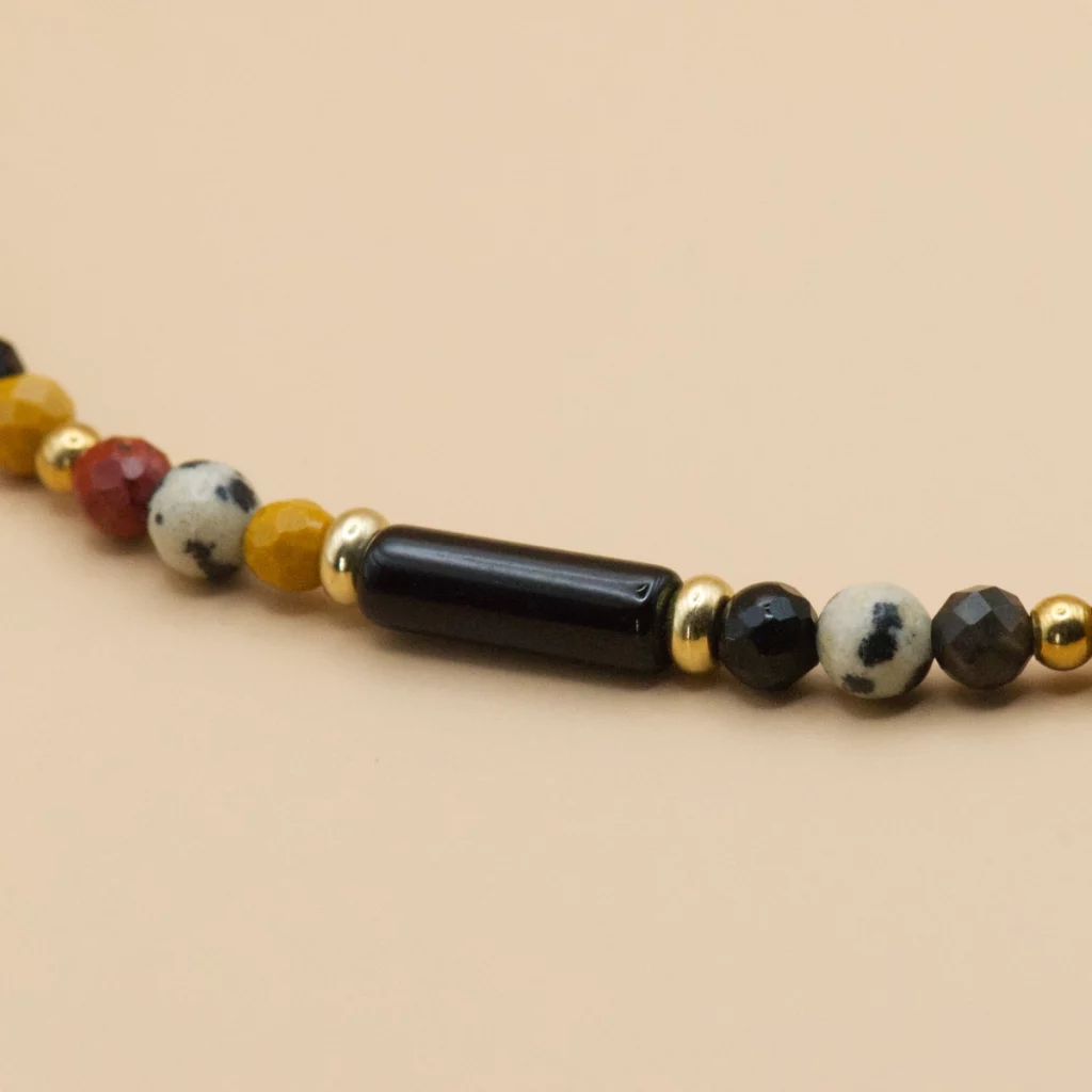 Kolekcja „Africa” to biżuteria, która łączy etniczne kolory z wzorami inspirowanymi naturą. Tworzą harmonijną paletę barw: od głębokich brązów i ciepłych beży po elegancką czerń. Wzory na kamieniach przypominają printy zwierzęce, nadając kolekcji dzikiego, a zarazem eleganckiego charakteru.