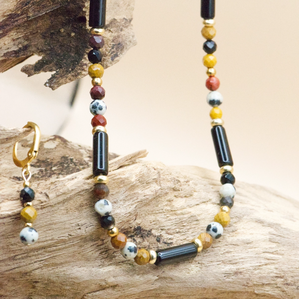 Kolekcja „Africa” to biżuteria, która łączy etniczne kolory z wzorami inspirowanymi naturą. Tworzą harmonijną paletę barw: od głębokich brązów i ciepłych beży po elegancką czerń. Wzory na kamieniach przypominają printy zwierzęce, nadając kolekcji dzikiego, a zarazem eleganckiego charakteru.