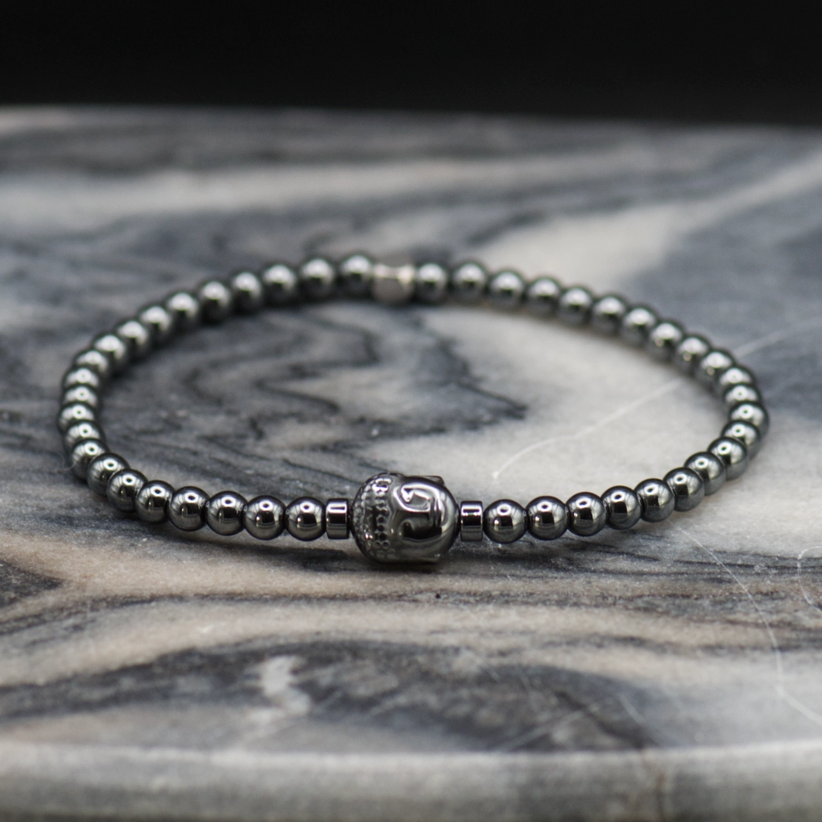 męska bransoletka z hematytu platerowanego z buddą pollygemstudioMęska bransoletka z kamieniami naturalnymi – Budda Shine Hematyt 4mm