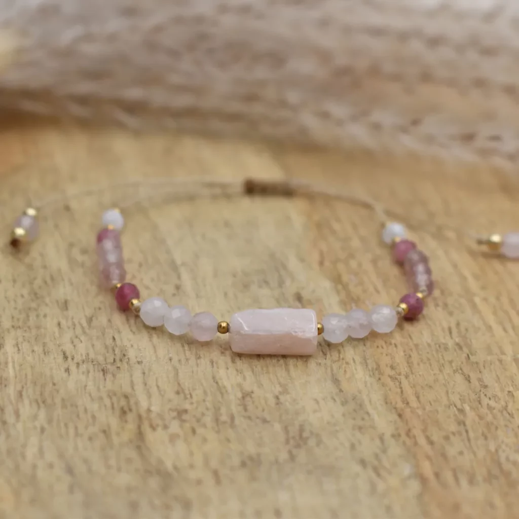Bransoletka „Miłość” to wyjątkowy talizman stworzony z kamieni naturalnych, które symbolizują miłość, harmonię i emocjonalne uzdrawianie. Każdy kamień został starannie dobrany ze względu na swoje właściwości wspierające miłość i relacje międzyludzkie. Oto opis kamieni użytych w tej bransoletce: