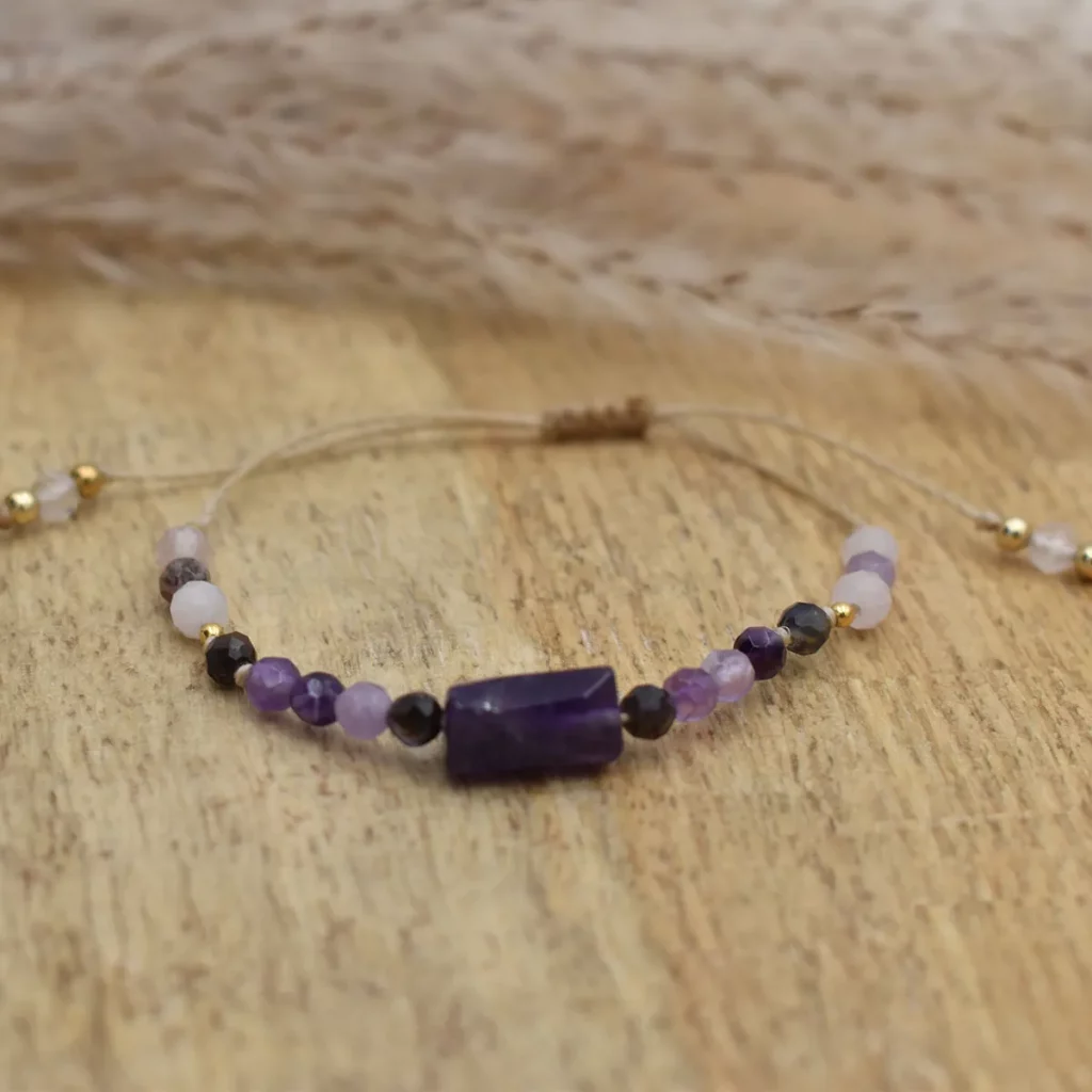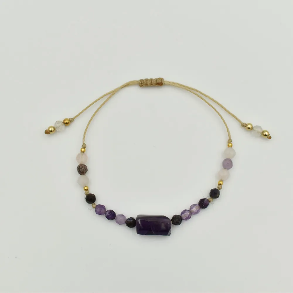 Kamienie naturalne użyte do stworzenia bransoletek są wyselekcjonowane ze względu na swoje właściwości lecznicze, energetyczne i symboliczne, które mają pomóc w osiągnięciu wewnętrznego spokoju, wzmacniając duchową ścieżkę każdej osoby. Mogą to być kamienie takie jak ametyst, który symbolizuje spokój i klarowność myśli, różowy kwarc, który reprezentuje miłość i harmonię, czy turmalin, który oczyszcza aurę i chroni przed negatywnymi energiami.