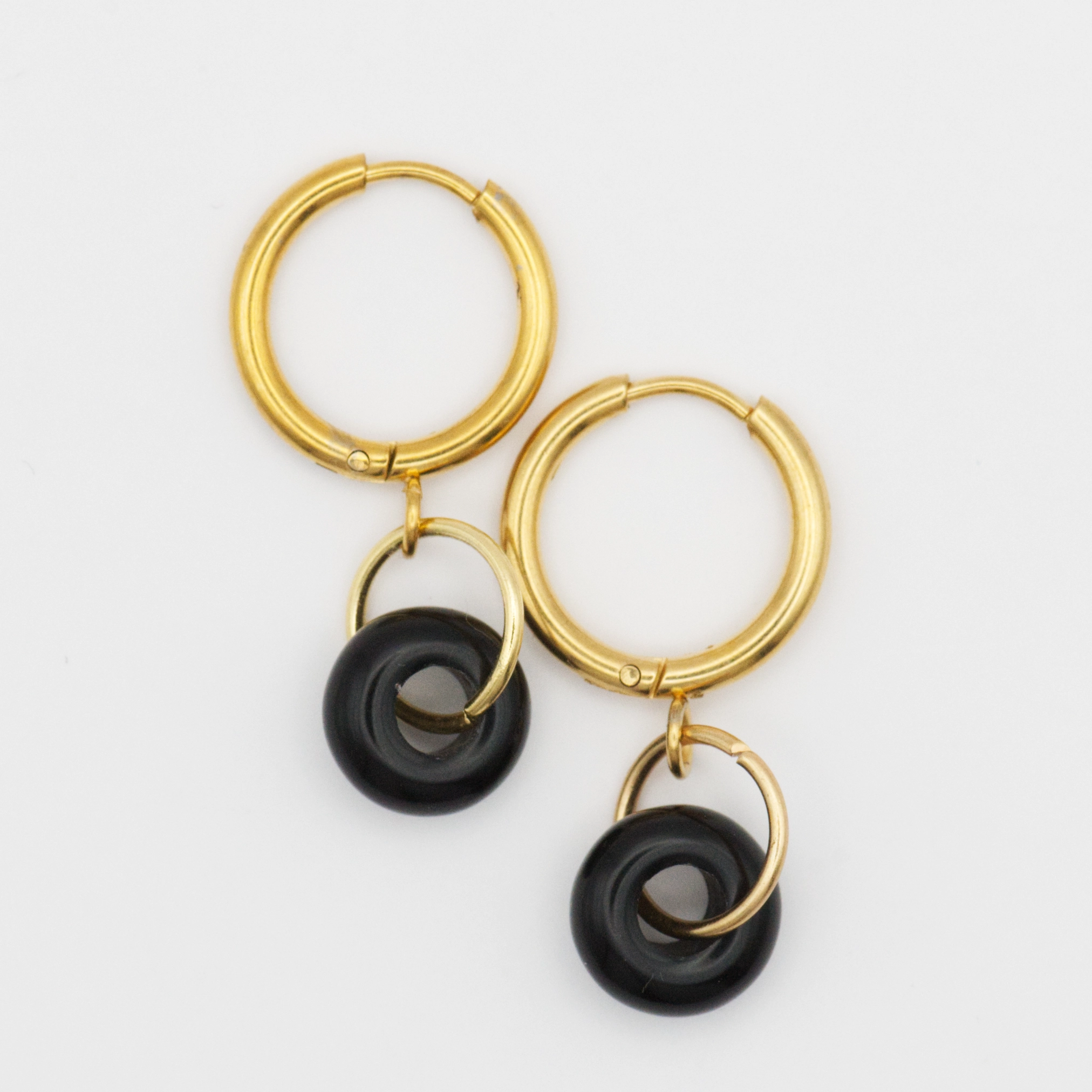 kolczyki ze stali chirurgicznej z kolekcji Hoops z czarnym AgatemKolczyki z czarnym agatem – Black Agate Hoops #5