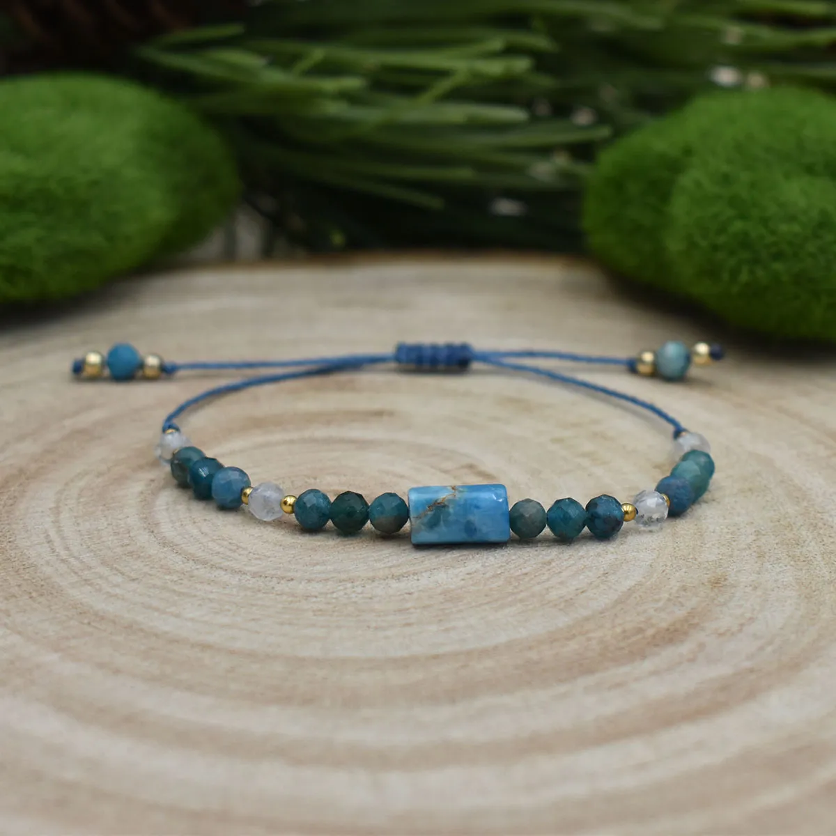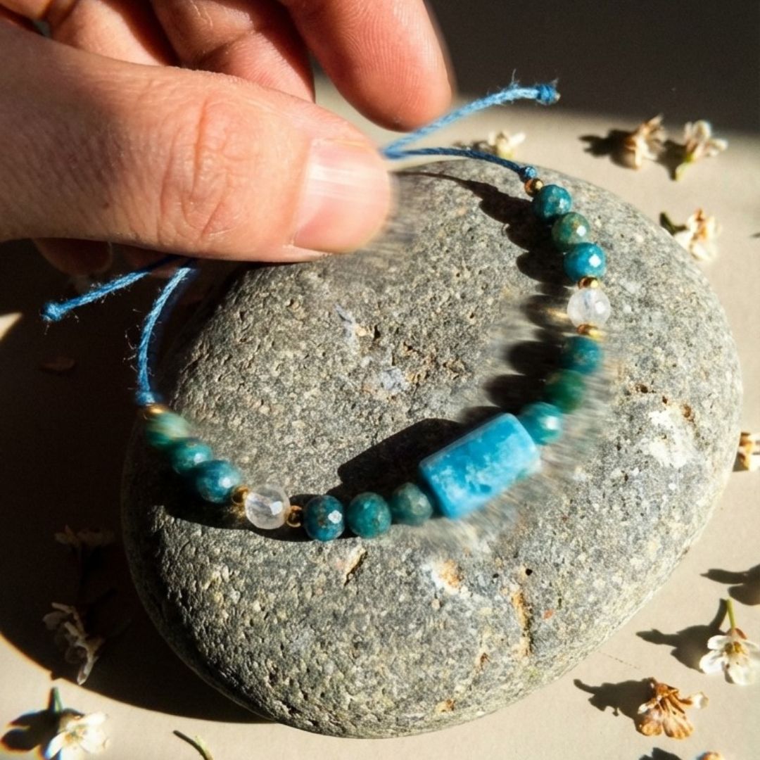 Bransoletka ”Sea” o naturalnych kolorach Morza… stworzona z kamieni takich jak : Apatyt, Kianit i Szafir
