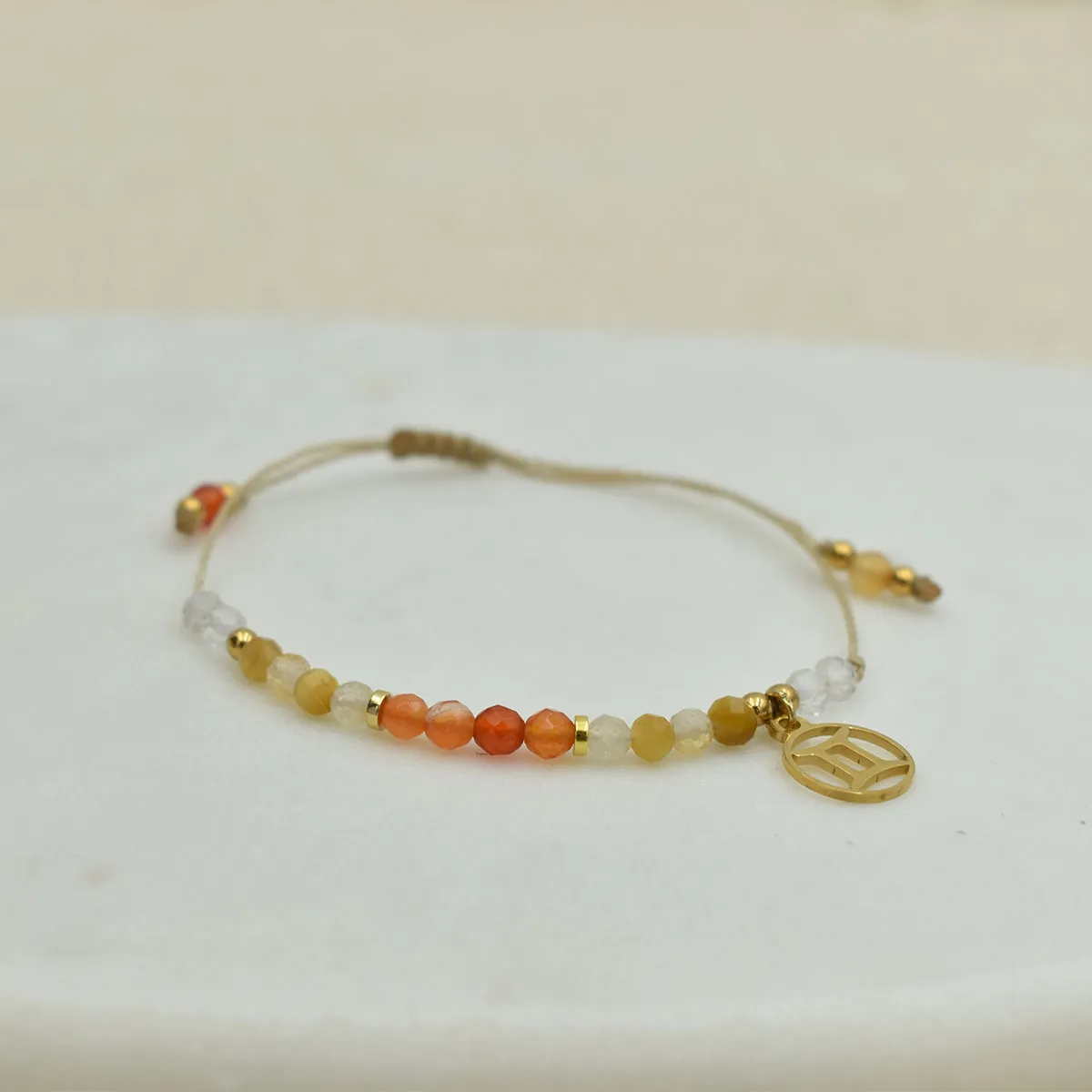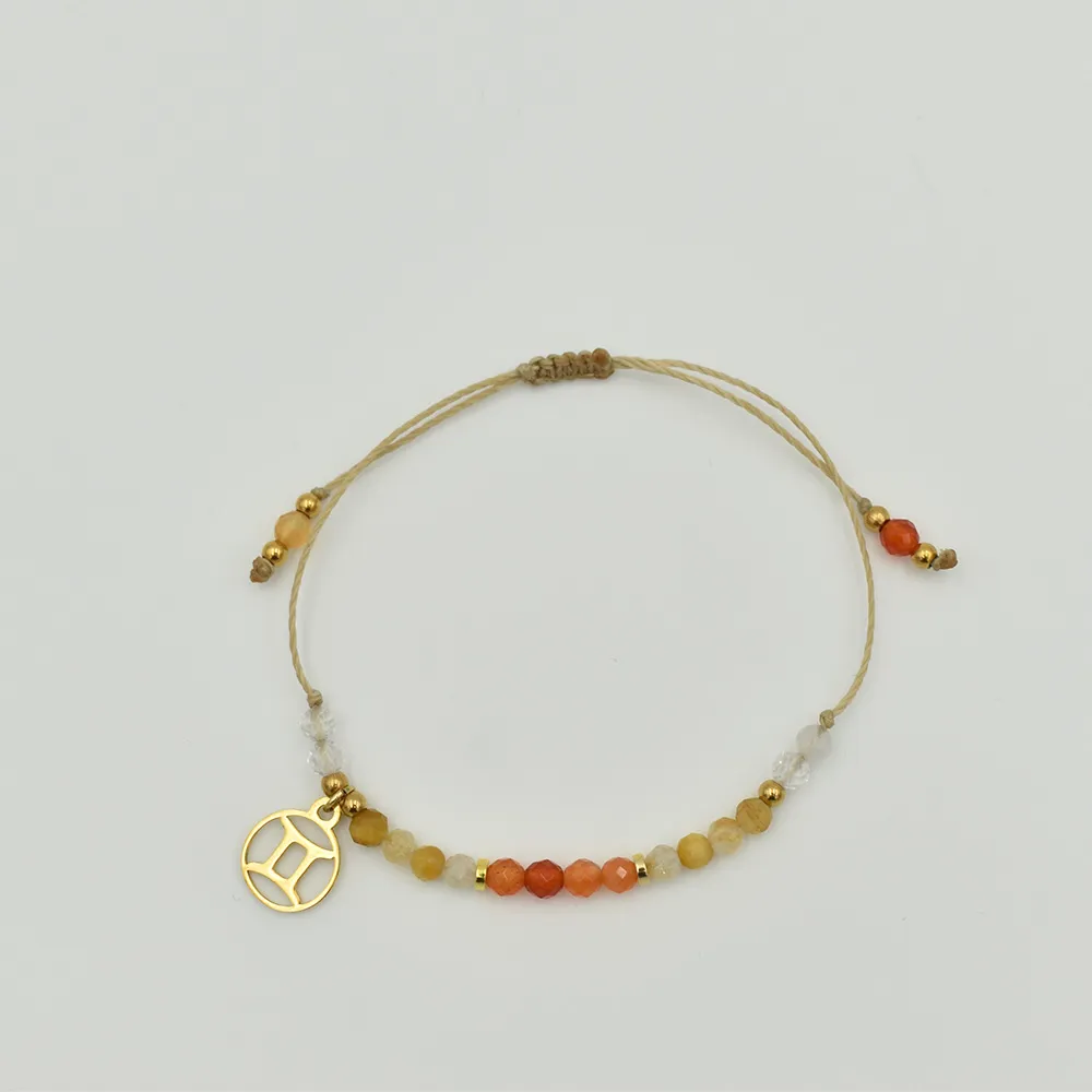 Bransoletka dla znaku zodiaku Bliźnięta z cytrynu, hematytu, karneolu, kryształu górskiego i tygrysiego oka to niezwykły talizman. Łączy w sobie energię i właściwości tych pięknych kamieni naturalnych z charakterystycznymi cechami osobowości Bliźniąt.