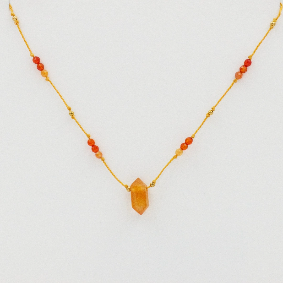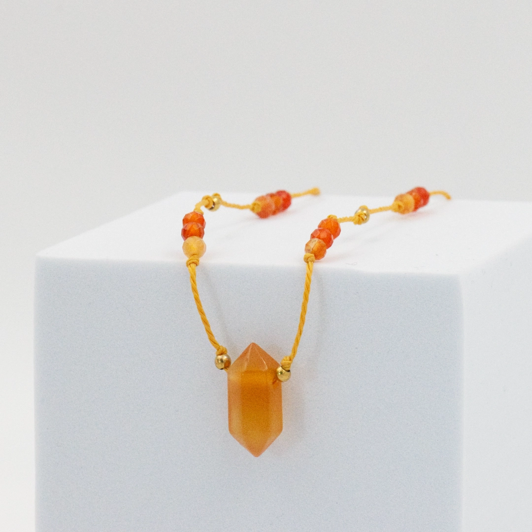♦ Karneol: To półszlachetny kamień o intensywnej, ciepłej barwie, najczęściej w odcieniach pomarańczowego, czerwonego i brązowego. Karneol jest ceniony za swoje właściwości energetyzujące i wspierające odwagę oraz kreatywność.